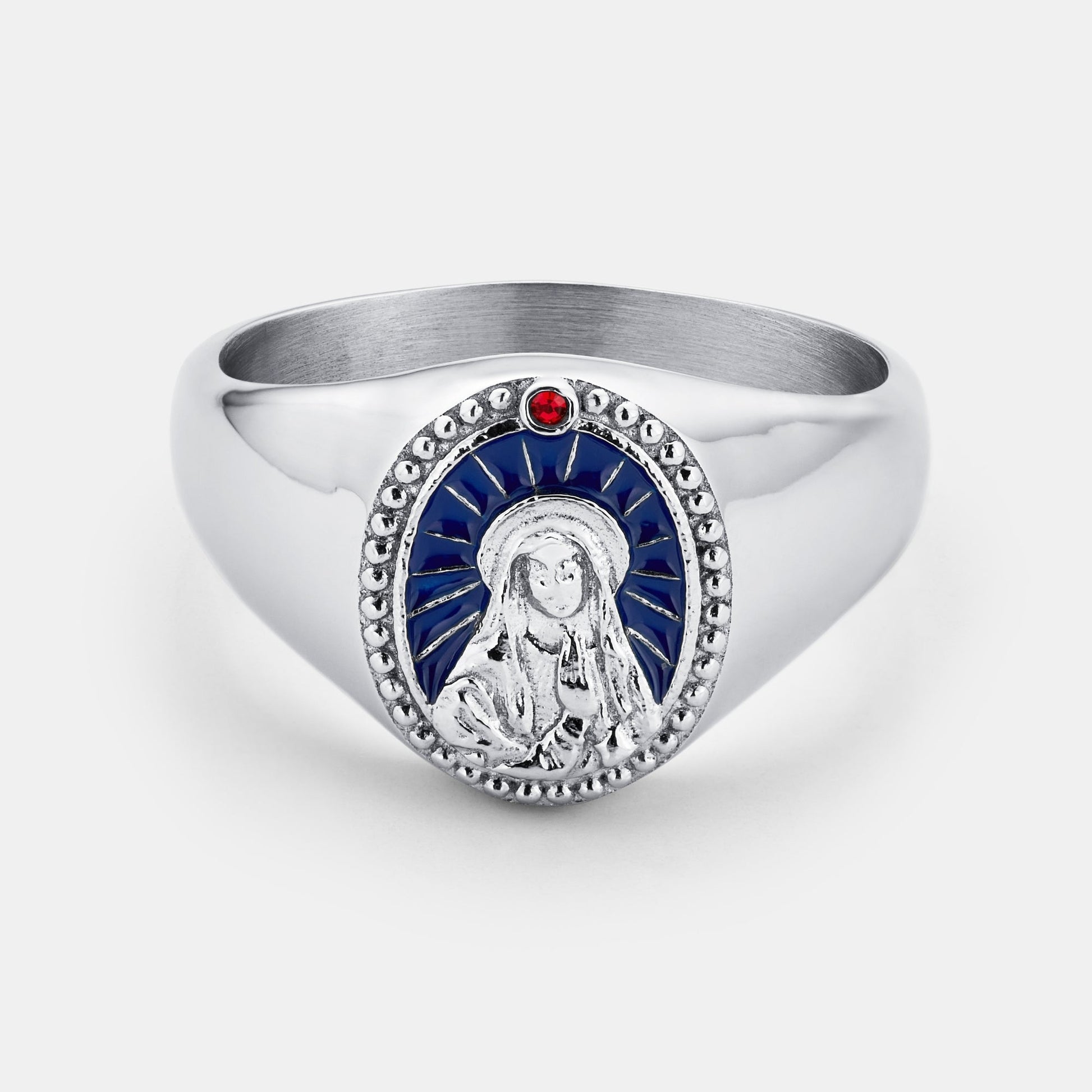Anello Sigillo in Smalto della Vergine Maria (Argento)