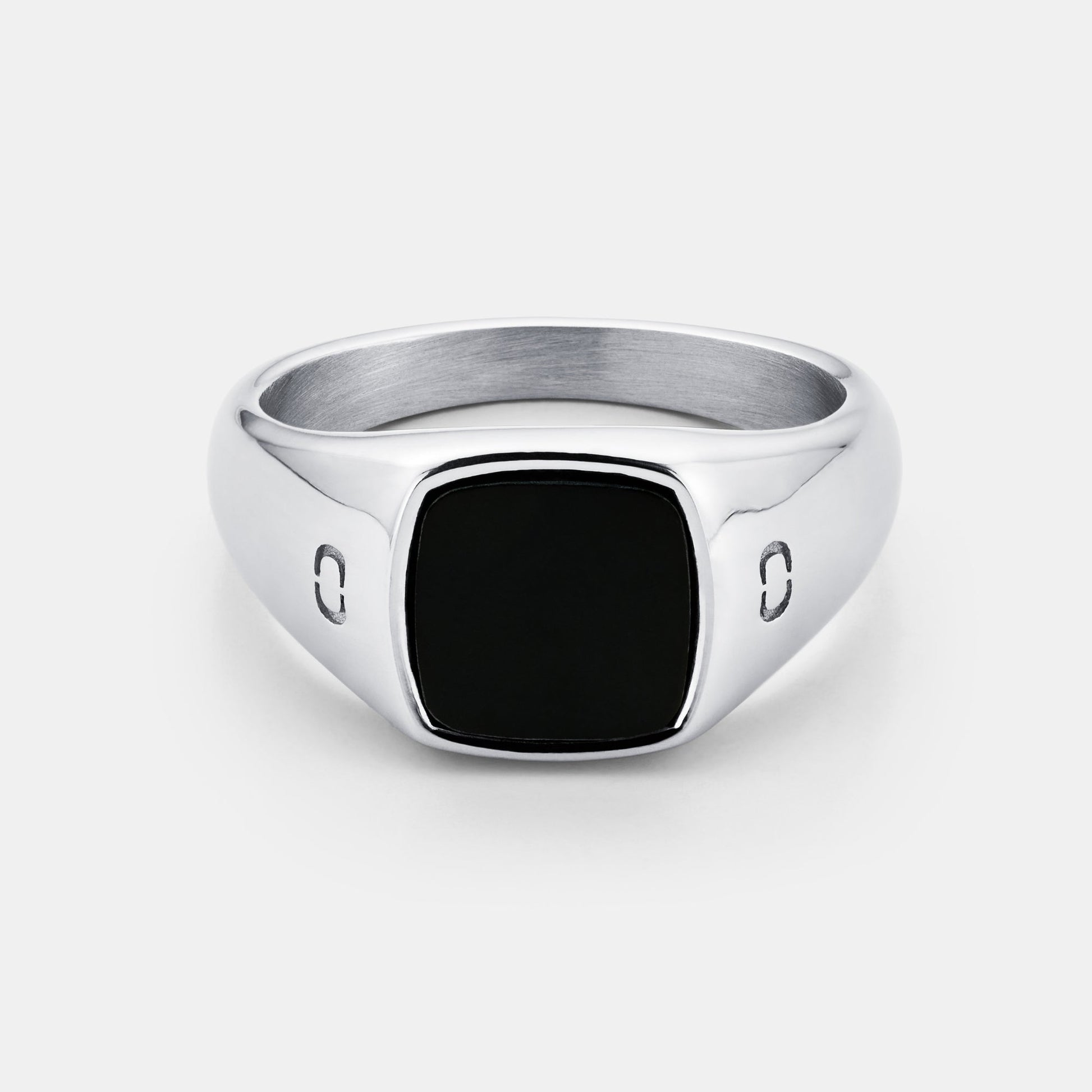 Un anello signet in argento è un essenziale nella collezione di ogni uomo. Questo pezzo classico presenta una pietra onice quadrata, incastonata a mano all'interno di un pregiato inlay in cabochon—una tecnica esperta che esalta il colore più ricco e profondo della pietra. Il suo rivestimento superiore, resistente ai graffi, protegge la lucentezza naturale, mentre l'interno spazzolato della fascia assicura comfort per tutto il giorno. Indossalo da solo o sovrapponilo ad altri stili—in ogni caso, è un anello senza tempo che ti accompagnerà per tutta la vita.
