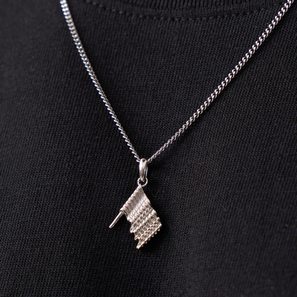 Questo collier in argento presenta una bandiera finemente dettagliata che richiama la potenza e l'imprevedibilità del vento. Serve come promemoria che le opportunità possono apparire in qualsiasi momento, esortandoti a rimanere vigile, concentrato e sempre pronto a cogliere ciò che verrà dopo. È sospeso da un gancio in argento di alta qualità, una catena cubana da 2 mm, e rifinito con una protezione resistente ai graffi e allo sbiadimento.