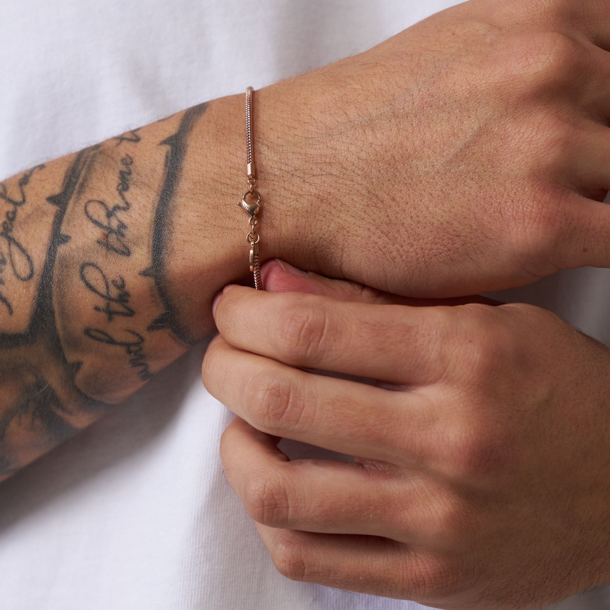 Oro Rosa: Abbiamo perfezionato la nostra composizione unica di oro rosa bilanciando con precisione una miscela di oro 18K e rame. Creando una placcatura in oro rosa con massima durata e profondità di colore.