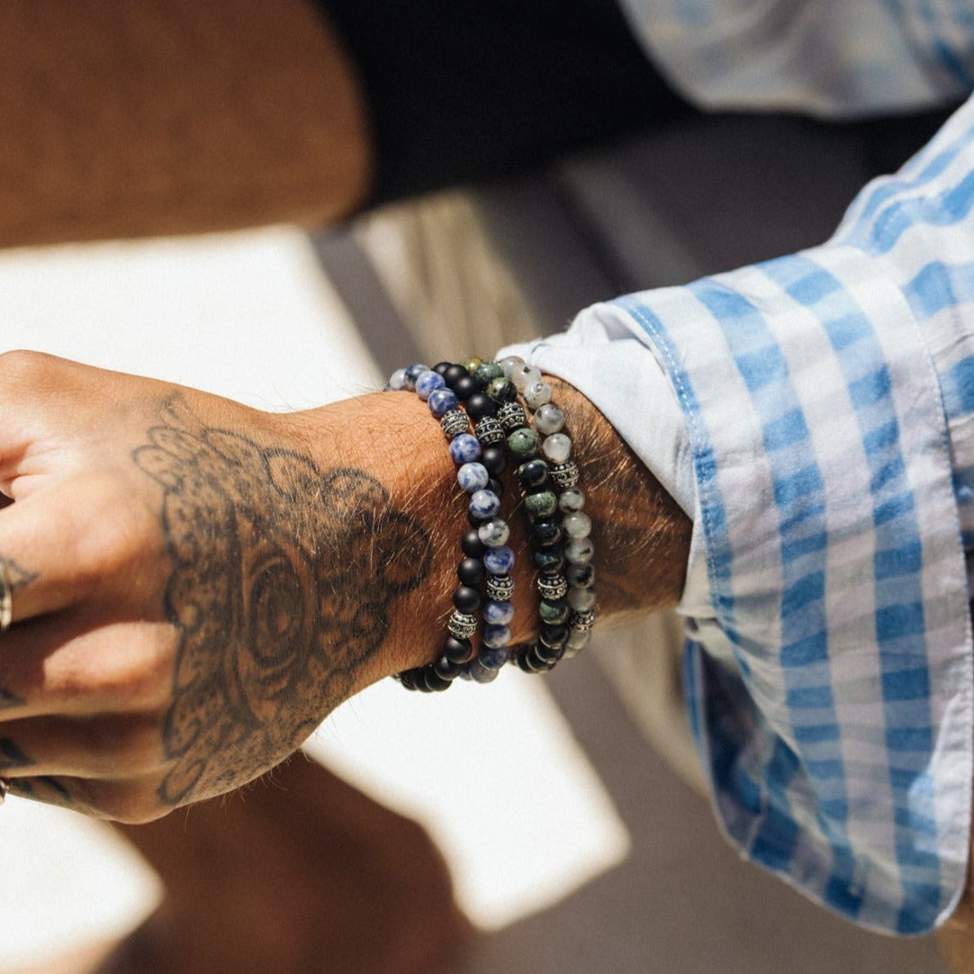CRAFTD per l'individualità, ogni pietra di Sodalite semipreciosa mostra le proprie marcature uniche, risultando in un pezzo veramente unico. Arricchito con perline in Argento, la sua estetica rilassata diventa il compagno ideale per quelle giornate fondamentali e tranquille.