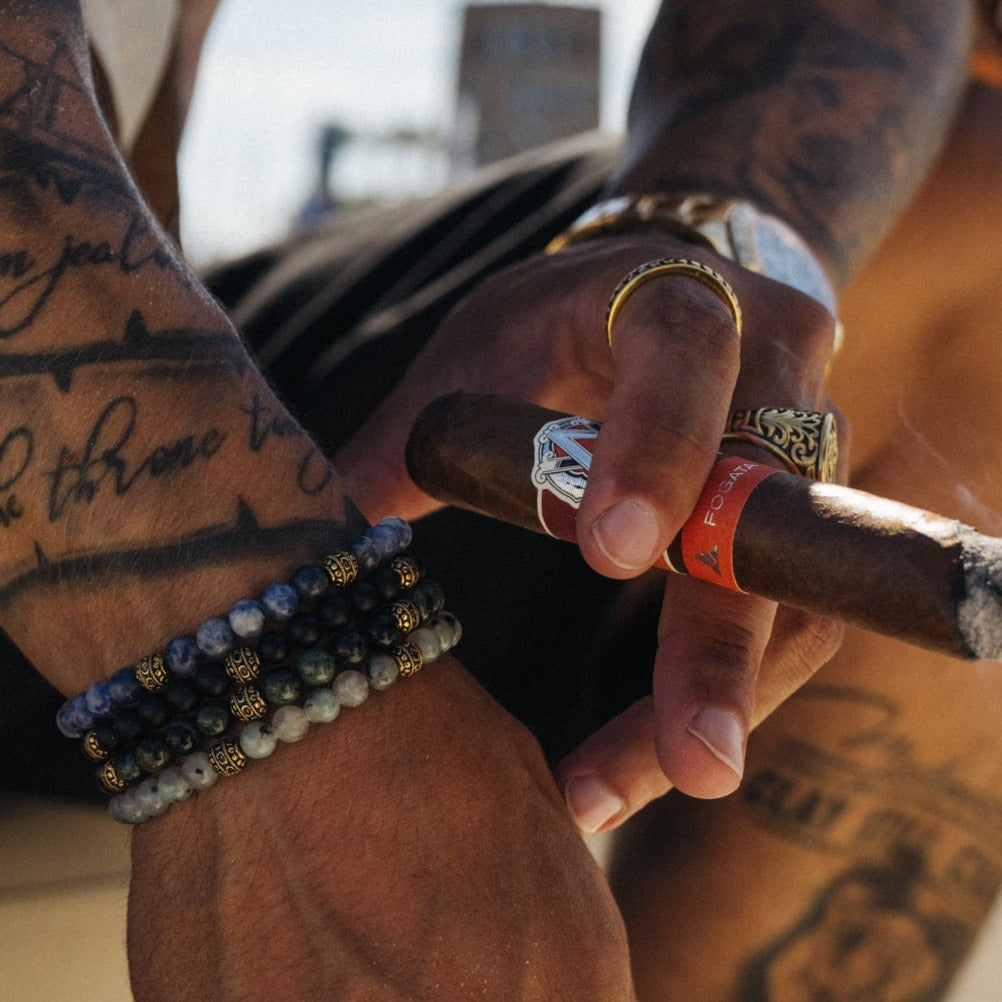 CRAFTD per l'individualità, ogni pietra semi-preziosa di Sodalite mostra le proprie marcature uniche, risultando in un pezzo davvero unico nel suo genere. Arricchito con perle in oro 18K, la sua estetica rilassata diventa il compagno ideale per quelle giornate essenziali e informali.
