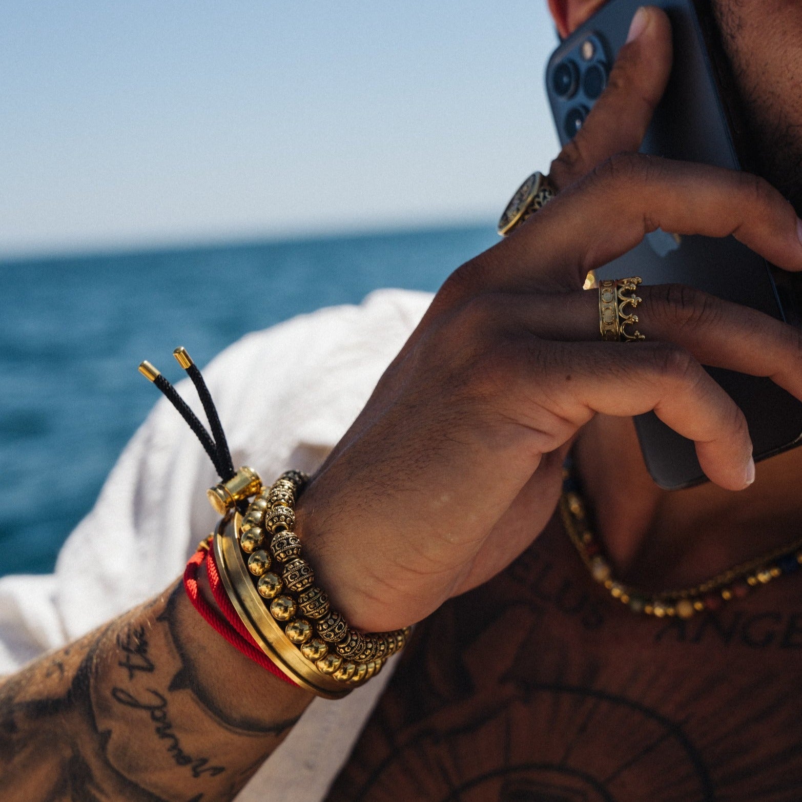 Infuso di un'estetica ornata, il bracciale Mosaic presenta sfere in oro 18K finemente marchiate. Una vestibilità flessibile consente un posizionamento senza sforzo sul polso, mentre il suo peso solido lo distingue come un pezzo superiore in qualsiasi collezione.