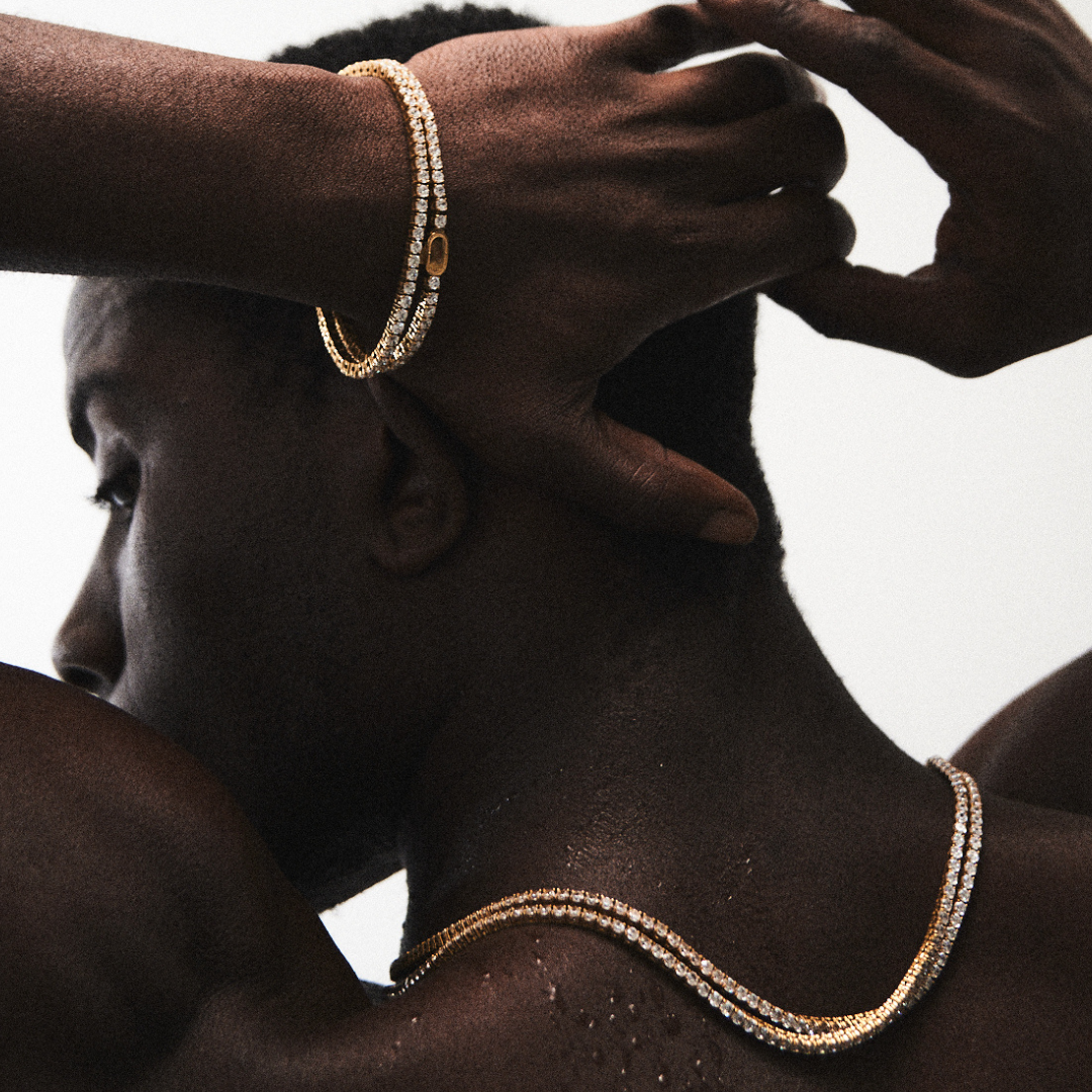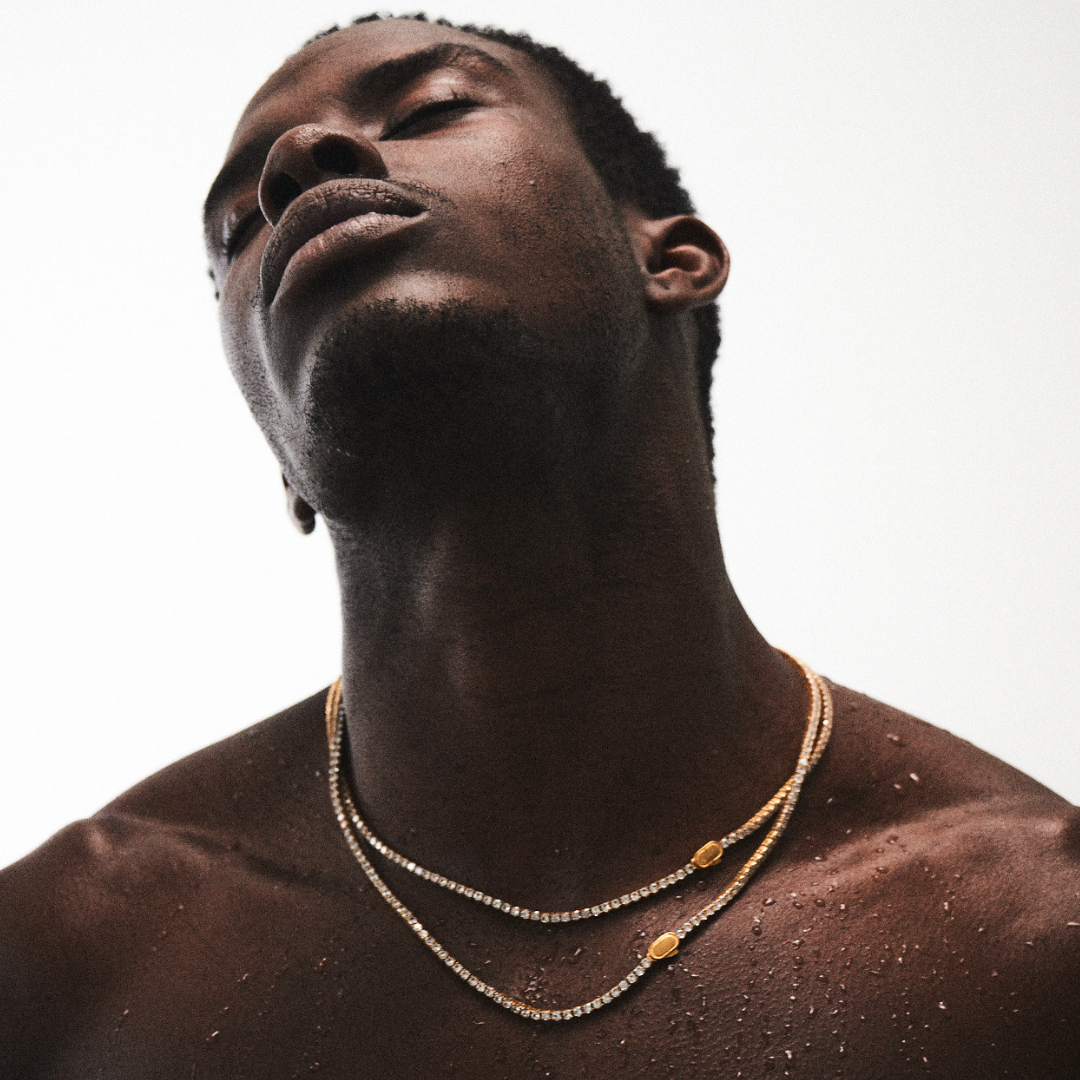 La Catena Tennis ICED presenta una fila di pietre tagliate a brillante da 3mm, ciascuna selezionata a mano e montata con precisione in un'impostazione a quattro griffe in oro 18 carati. Questa impostazione non solo protegge le pietre, ma massimizza la riflessione della luce, conferendo a ciascuna di esse una lucentezza che rivalizza anche con i diamanti più pregiati. La catena si adagia senza sforzo attorno al collo, assicurata con una chiusura a prova di scatto e rifinita con una protezione resistente ai graffi.