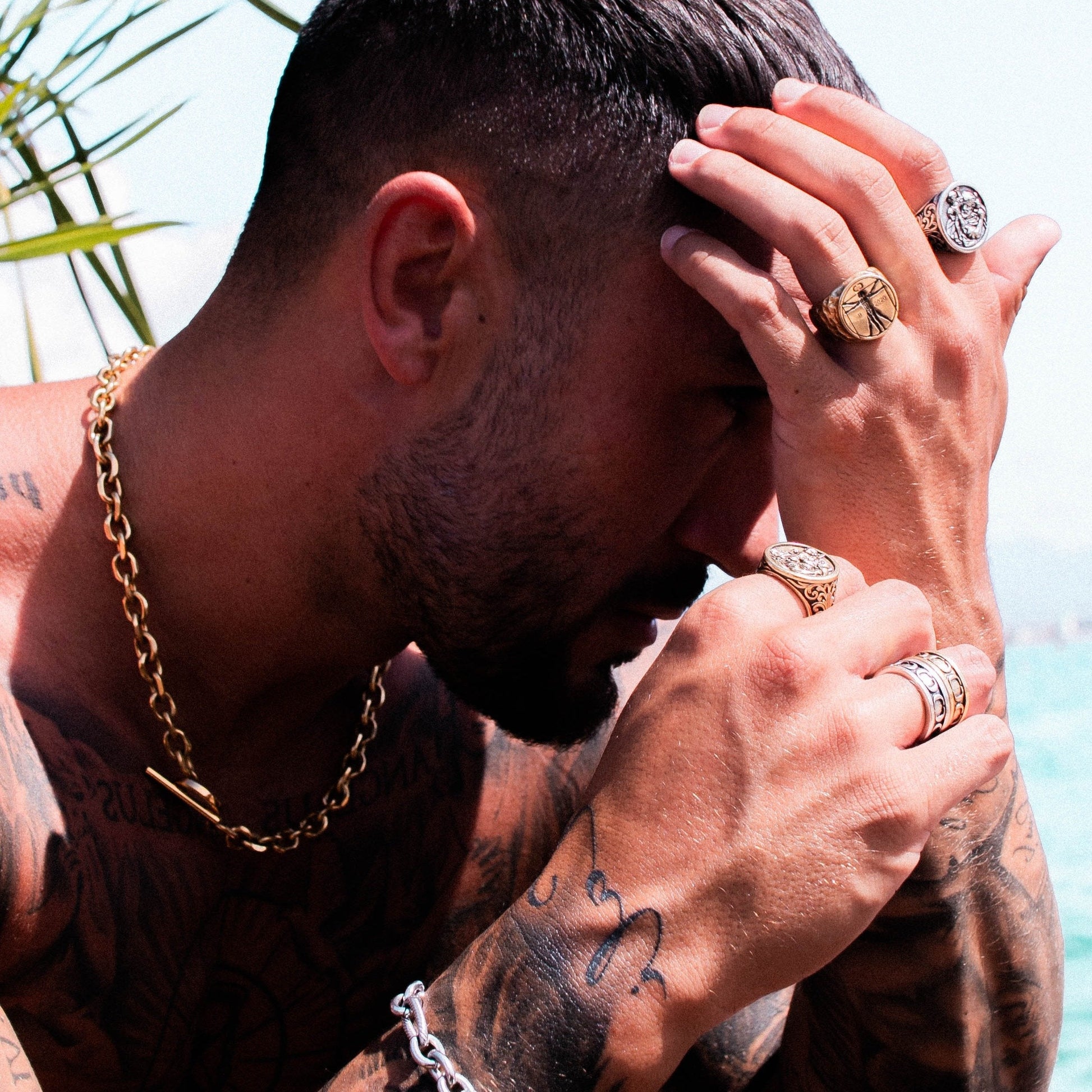 Prima regola per creare un stack solido? La sottigliezza è sopravvalutata. Con anelli lisci e pesanti e un toggle con il marchio Craftd, questo pezzo non passerà inosservato—È tempo di spuntare la regola n.1 dalla tua lista.