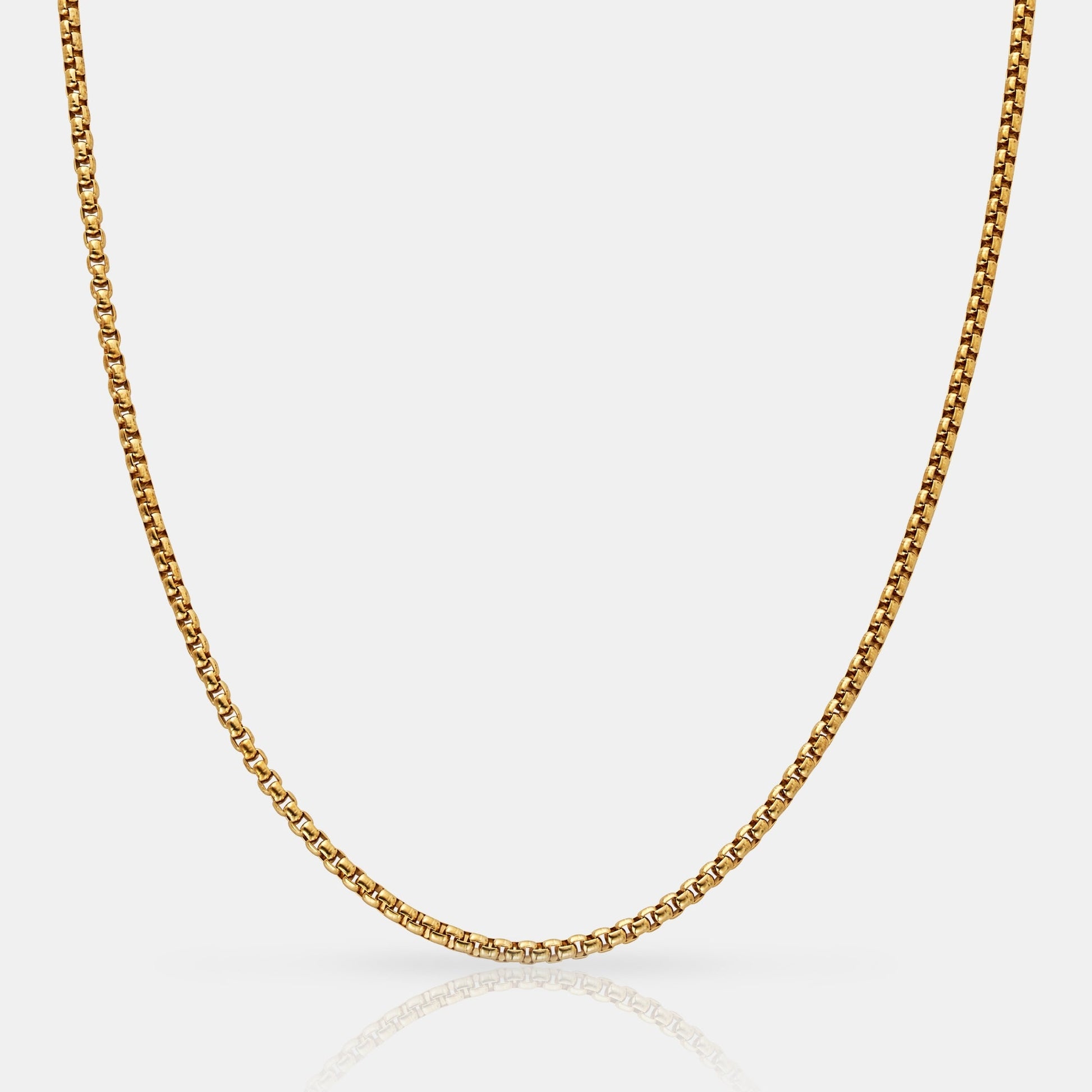 Realizzata a mano con precisione e scopo, la collana a catena a scatola in oro 18K ti offre gli elementi essenziali per lasciare un'impressione duratura. Progettata per essere indossata quotidianamente, il suo design pulito e sobrio appare magnifico da sola o sovrapposta a qualsiasi altro pezzo. Progettata per posizionarsi senza sforzo sul tuo collo, è sicura con un gancio a aragosta resistente ai colpi e rifinita con una protezione resistente ai graffi.