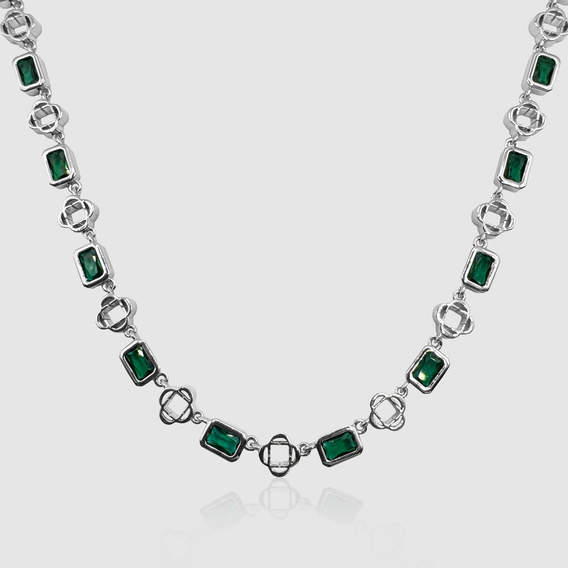 Conosciuta come fonte di abbondanza e positività, questa collana verde smeraldo è impreziosita da pietre tagliate a brillante e trifogli in argento. Incorniciate all'interno di una montatura a incasso, i bordi smussati delle gemme intensificano il loro colore vibrante e ne migliorano la durata. I collegamenti accoppiati garantiscono una vestibilità perfetta intorno al collo, mentre il nostro fermaglio resistente agli urti e la protezione antigraffio rendono questo pezzo veramente CRAFTD per durare.