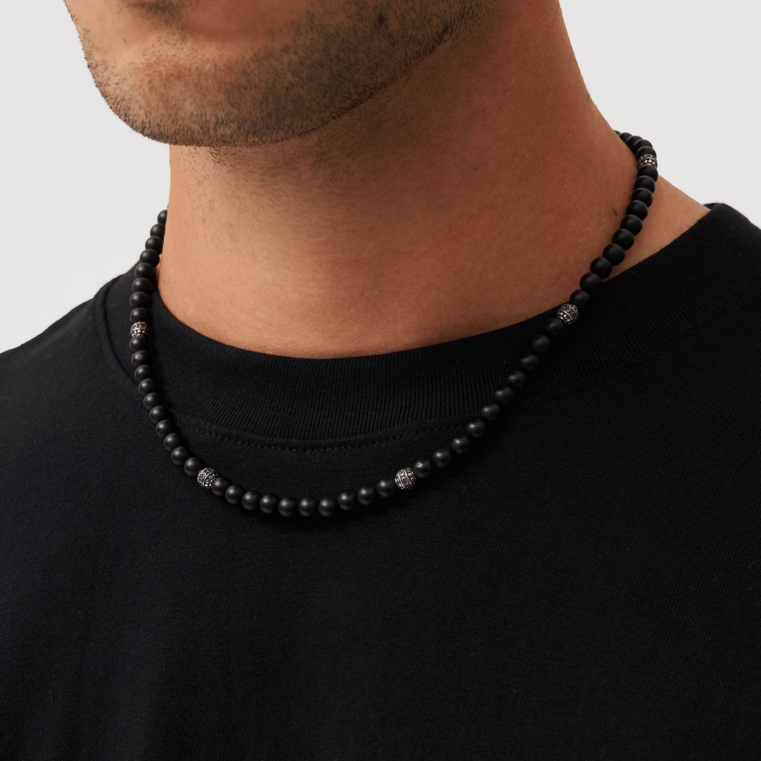 Collana di Perline in Onice Opaco (Argento)