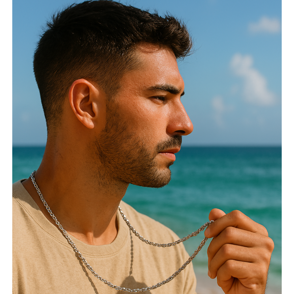 Aggiungi un tocco di autorità e stile audace al tuo look con la collana Imperial – creata per chi detta il ritmo, non per chi lo segue.