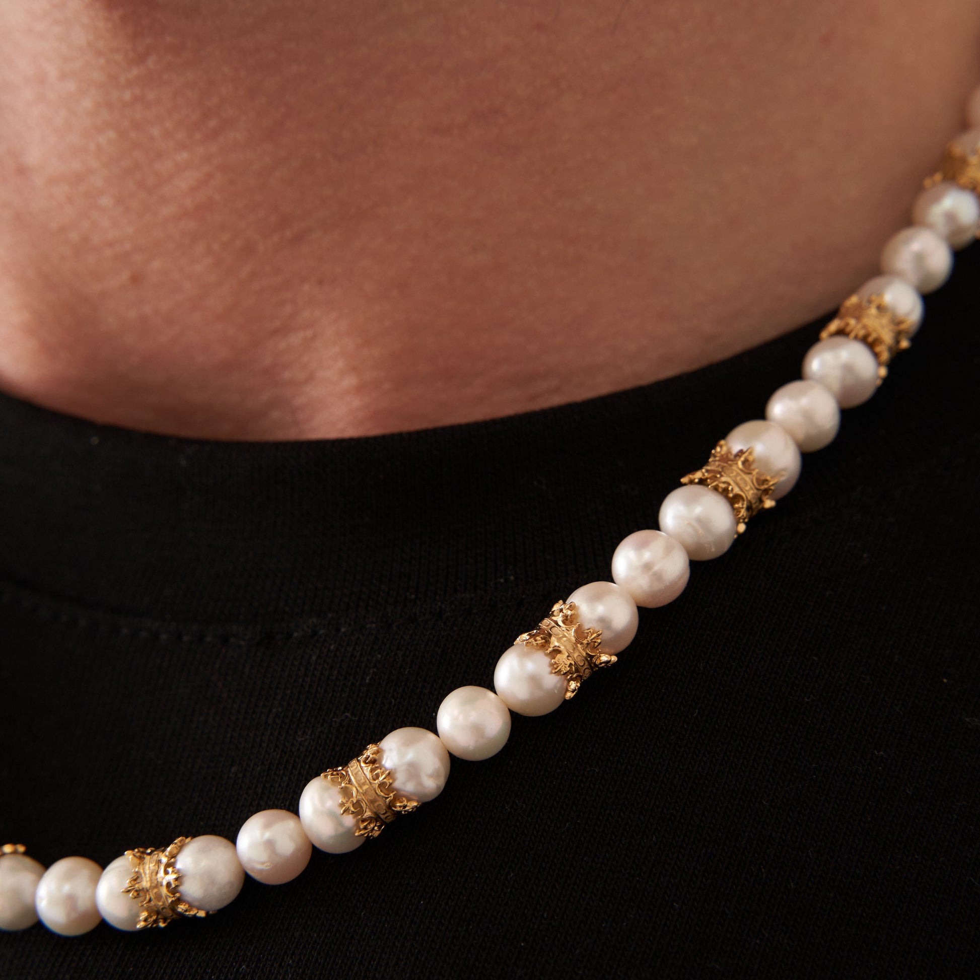 Collana in Perle Vere con Corona (Oro)