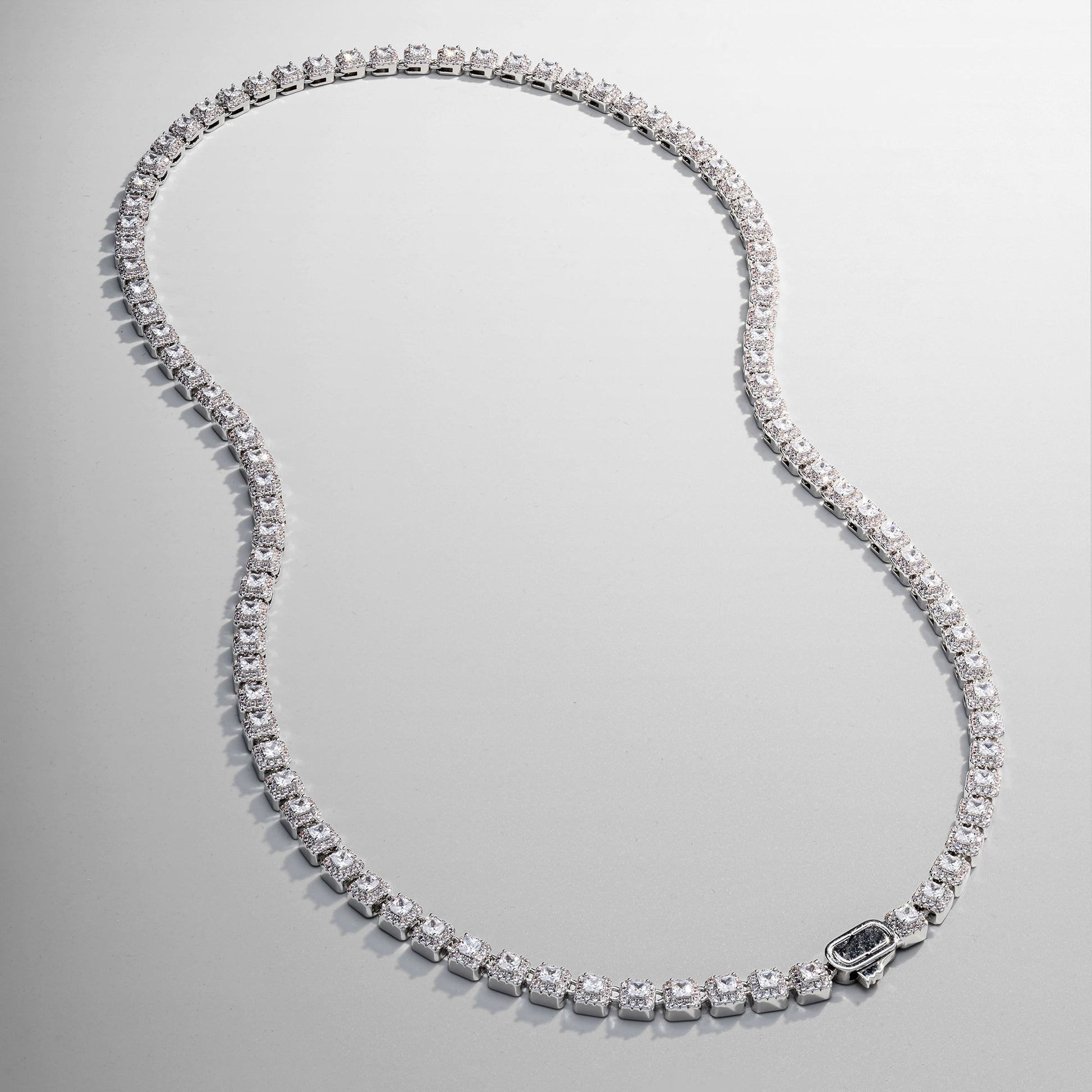 Questa collana tennis ICED presenta una fila di cristalli tagliati a forma quadrata incastonati in un'impostazione in argento a quattro punte. Progettata per riflettere la luce naturale, ogni cristallo è incorniciato da un insieme delle pietre AAA di grado più fredde—selezionate a mano e incastonate con precisione per una brillantezza che compete anche con i diamanti più pregiati. La collana si adagia senza sforzo attorno al collo, sicura grazie a una chiusura resistente agli urti e rifinita con una protezione antigraffio.