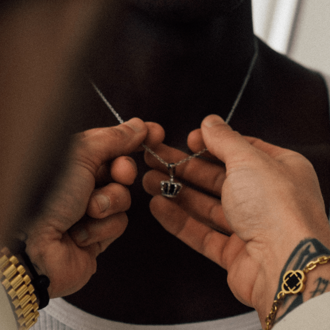 Questo pendente in argento presenta una bold gemma onice racchiusa all'interno di una corona finemente CRAFTD. È un promemoria per sostenere le tue decisioni, stare dritto e guidare con fiducia, qualunque cosa ti si presenti. Indossarlo significa possedere la propria vita, incarnare forza, resilienza e la propria visione. È sospeso su un gancio in argento di alta qualità, catena a maglie da 3 mm, ed è rifinito con una protezione resistente a graffi e sbiadimento.