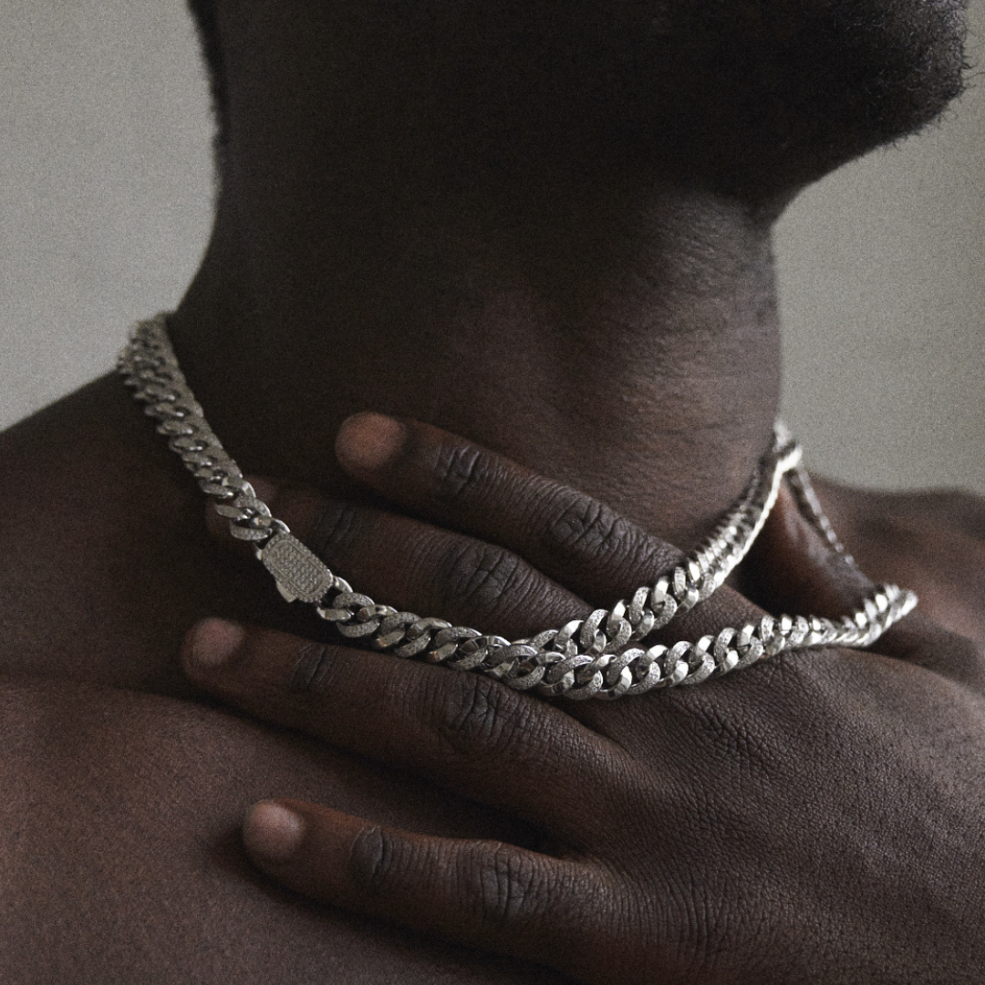 Realizzato con le pietre AAA-grade più fredde, questo Cuban di Miami in argento attira l'attenzione come nessun altro. I suoi collegamenti più affilati e ben definiti sono progettati per adattarsi perfettamente al tuo collo con una lucentezza che rivaleggia anche con i diamanti più pregiati. È sicuro grazie al nostro iconico fermo a scatto, e rifinito con una protezione resistente ai graffi e allo sbiadimento.