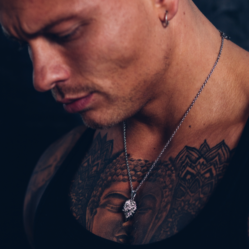 Questo pendente in argento presenta una testa di leone intagliata a mano, catturando il potere e la presenza del re della giungla. La vera forza non riguarda il potere; riguarda il coraggio, l'integrità e come ti presenti quando nessuno ti osserva. Qualunque cosa ti si presenti, questo pezzo serve come promemoria che sei costruito per affrontarlo. Sospeso da un gancio in argento di alta qualità e una catena a maglie da 2 mm, è rifinito con una protezione resistente ai graffi e allo sbiadimento.