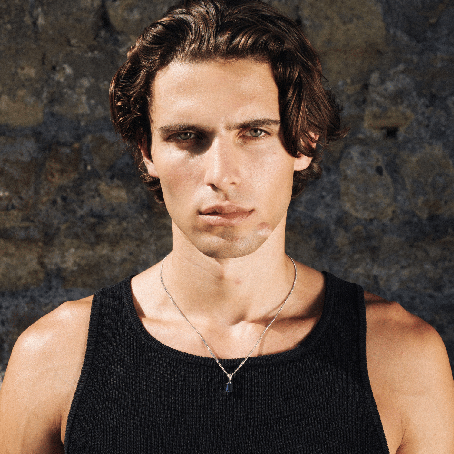 Questo pendente in argento con solitaire presenta una pietra di colore zaffiro in una audace impostazione a quattro artigli. I dettagli incisi aggiungono carattere, mentre il gancio lucido e la classica catena cubana lo fanno sedere naturalmente contro il tuo petto. Finito con una protezione resistente ai graffi e allo sbiadimento, è il tipo di pezzo che indossi una volta e non vuoi mai togliere.