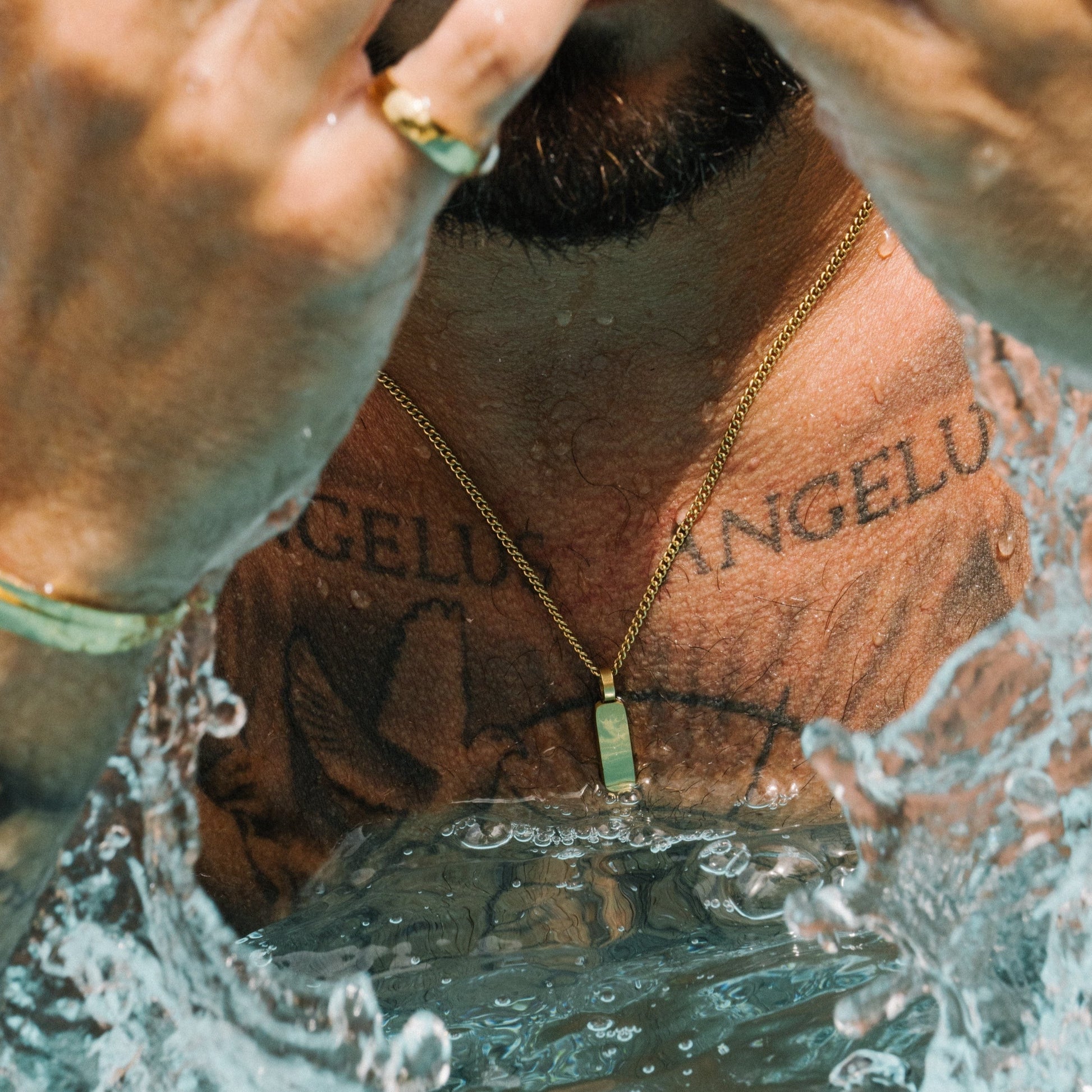 Sospeso da una classica catena cubana, questo collier in oro 18 carati presenta un totem pesato con precisione e una finitura spazzolata di alta qualità. Progettato per l'uso quotidiano, pende da un'elegante anella dorata ed è rifinito con protezione resistente ai graffi e allo sbiadimento. Un'aggiunta senza tempo a qualsiasi collezione, perfetto da indossare da solo o sovrapposto ai tuoi altri gioielli in oro.